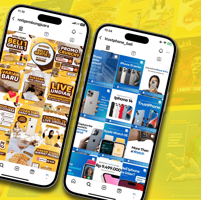 Jangan biarkan feed Instagram Anda tertinggal. Huw Studio hadir dengan solusi desain yang tidak hanya indah dipandang, tetapi juga dirancang untuk mencapai tujuan bisnis Anda.